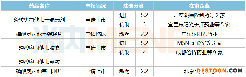 表1:目前奧司他韋相關制劑申報并在審的產(chǎn)品情況