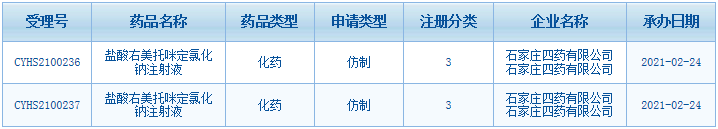 截至目前,鹽酸右美托咪定注射液已有江蘇正大清江制藥、石藥銀湖制藥、石家莊四藥等7家企業(yè)以仿制3類提交上市申請?jiān)趯徳u審批中(在藥審中心),鹽酸右美托咪定氯化鈉注射液有揚(yáng)子江藥業(yè)集團(tuán)、湖南科倫制藥、成都倍特藥業(yè)3家企業(yè)以仿制3類提交上市申請?jiān)趯徳u審批中(在藥審中心),獲批后將視同過評。