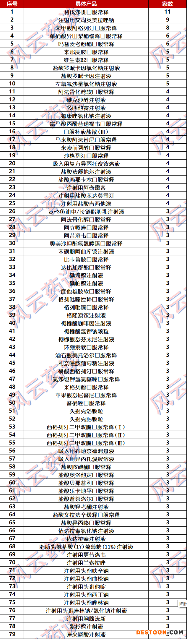 符合第五輪國(guó)采的79個(gè)品種明細(xì)