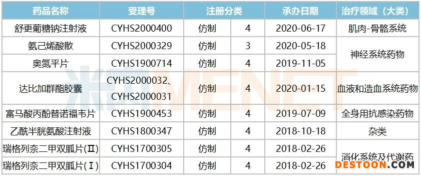 表4:截至2020年苑東生物申報(bào)上市并在審的產(chǎn)品情況