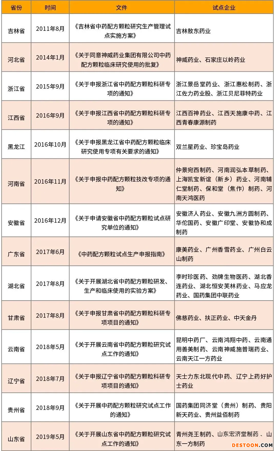 我國部分省市中藥配方顆粒省級文件和試點(diǎn)企業(yè)