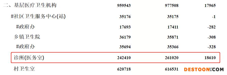 基層醫(yī)療衛(wèi)生機構(gòu),圖片來自:全國醫(yī)療衛(wèi)生機構(gòu)數(shù)