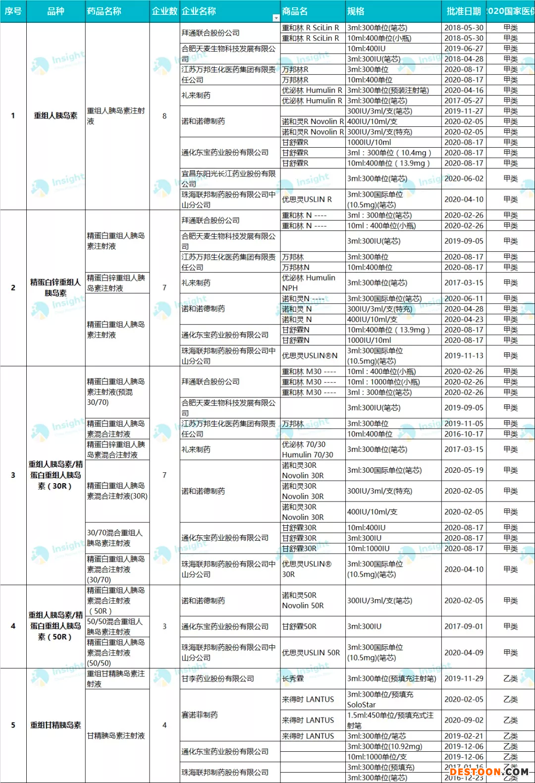 有分析指出,預(yù)計(jì)胰島素納入集采已經(jīng)提上議程。Insight數(shù)據(jù)庫(kù)顯示,目前國(guó)內(nèi)多個(gè)胰島素產(chǎn)品生產(chǎn)企業(yè)已經(jīng)達(dá)3家及以上,分別是重組人胰島素、精蛋白鋅重組人胰島素、精蛋白重組人胰島素(30R)、精蛋白重組人胰島素(50R)、重組甘精胰島素,總的來(lái)看主要集中在二代和三代胰島素上。