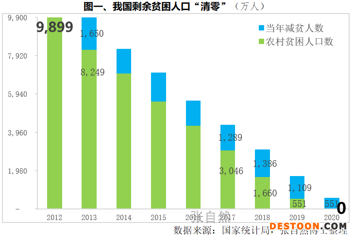 2013年當(dāng)年實現(xiàn)1650貧困人口脫貧,2017、2018、2019三年脫貧人數(shù)分別為1289萬人、1386萬人和1109萬人,到2020年底,年初剩余的551萬農(nóng)村貧困人口全部脫貧、52個貧困縣全部摘帽。(圖一),提前10年實現(xiàn)《聯(lián)合國2030年可持續(xù)發(fā)展議程》減貧目標(biāo),創(chuàng)造了又一個彪炳史冊的人間奇跡!