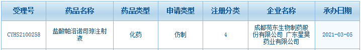 核心提示:3月10日訊 日前,CDE官網(wǎng)顯示,成都苑東生物制藥|廣東星昊藥業(yè)的鹽酸帕洛諾司瓊注射液以仿制4類報(bào)產(chǎn)獲受理,獲批后將視同過評(píng)。