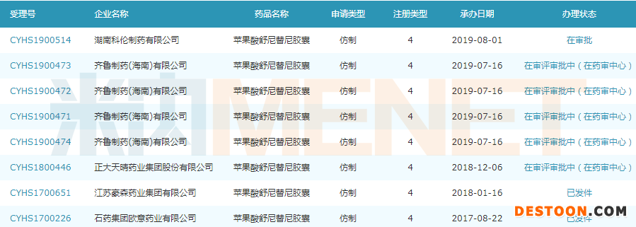 蘋果酸舒尼替尼膠囊仿制4類上市申請情況
