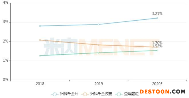 米內(nèi)網(wǎng)數(shù)據(jù)顯示,近幾年在重點(diǎn)城市實(shí)體藥店婦科中成藥市場銷售額均保持20億元左右,2020年受疫情影響,預(yù)計(jì)同比有所下滑。從亞類格局來看,婦科炎癥用藥和婦科調(diào)經(jīng)藥仍然是兩大主力,市場份額占比合計(jì)超過80%。