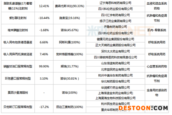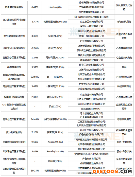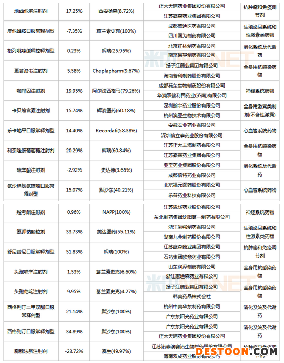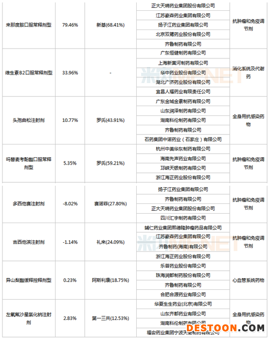 此外,賽諾菲涉及3個(gè)原研藥品——多西他賽注射劑、奧沙利鉑注射劑、胺碘酮口服常釋劑型;羅氏涉及兩個(gè)原研藥品——頭孢曲松注射劑、嗎替麥考酚酯口服常釋劑型;默沙東涉及3個(gè)原研藥品——氯沙坦氫氯噻嗪口服常釋劑型、西格列汀二甲雙胍口服常釋劑型、西格列汀口服常釋劑型;葛蘭素史克涉及3個(gè)原研藥品——拉米夫定口服常釋劑型、頭孢呋辛注射劑、頭孢他啶注射劑。
