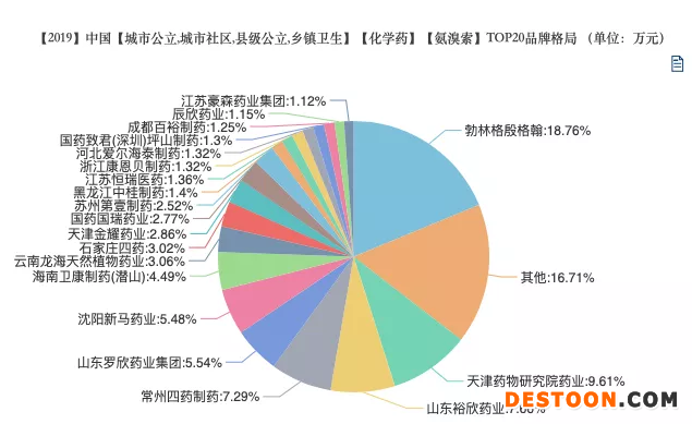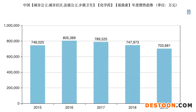 近年來,氨溴索的銷售額有所下滑,不過降幅不大,相對穩(wěn)定,依舊保持在一個較高的水平。米內(nèi)網(wǎng)數(shù)據(jù)顯示,2019年中國公立醫(yī)療機構(gòu)終端氨溴索銷售額超過70億元。