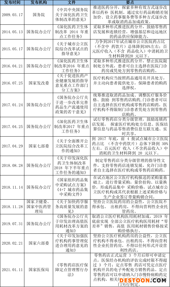 近年來,隨著國家醫(yī)藥衛(wèi)生體制改革持續(xù)推進,醫(yī)藥行業(yè)新政頻出。在一系列政策的推動下處方外流成為重點關注的工作,同時也是我國零售市場發(fā)展最核心的關鍵詞之一。