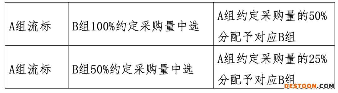 無論是A組還是B組,都設(shè)置100%和50%兩種約定采購量的中標(biāo)規(guī)則。