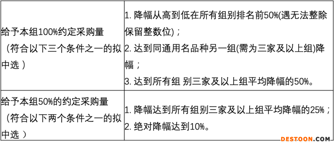 當(dāng)組內(nèi)申報企業(yè)數(shù)量為2家及以下時,可以獲得的采購量分為可獲得100%采購量或50%采購量。