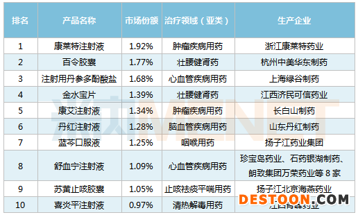 2020年重點(diǎn)城市公立醫(yī)院中成藥產(chǎn)品TOP10