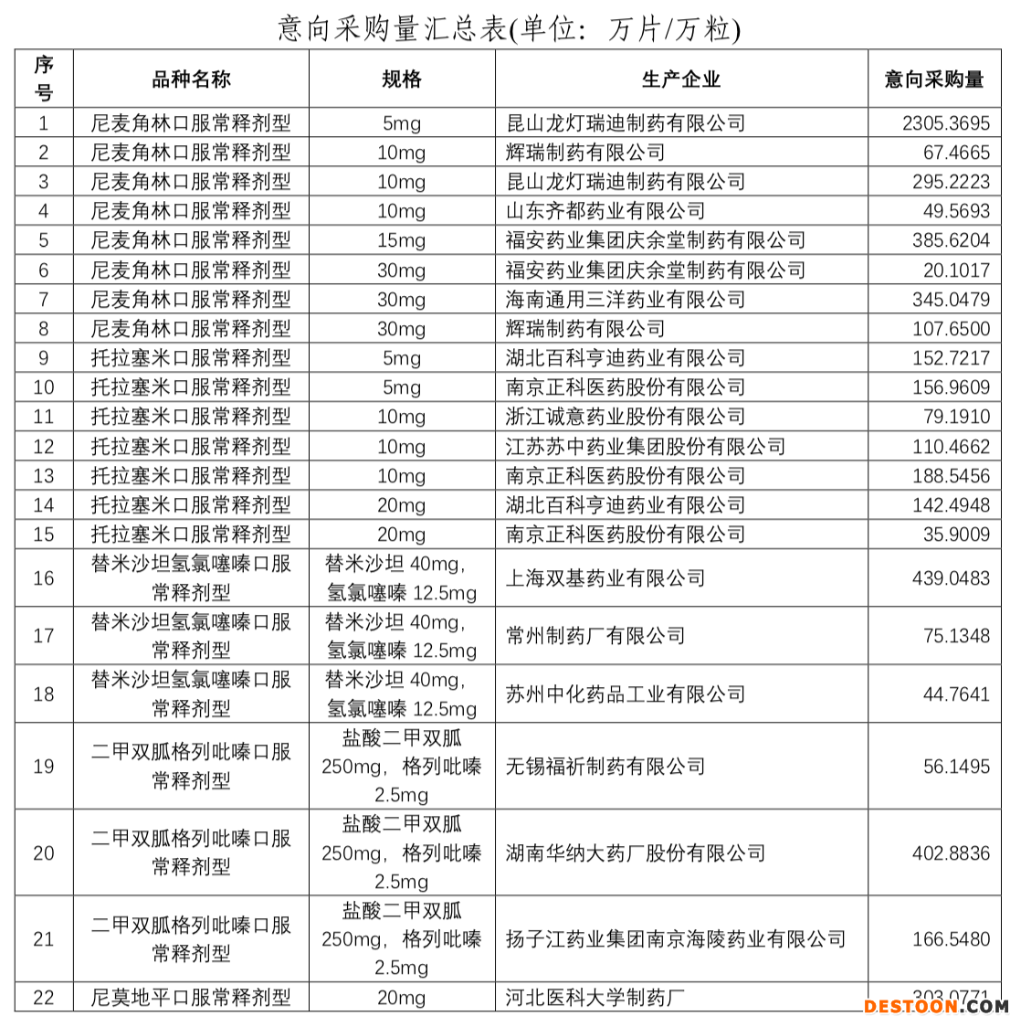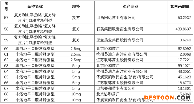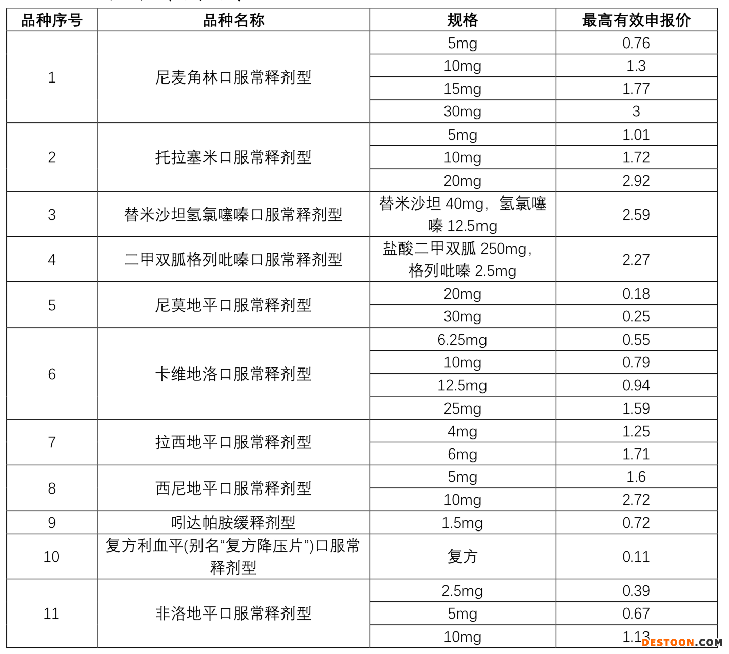 據(jù)了解,共有11個品種被納入采購名單,共24個品規(guī) ,全部為口服品種;包括尼麥角林口服常釋劑型、托拉塞米口服常釋劑型、替米沙坦氫氯噻嗪口服常釋劑型、二甲雙胍格列吡嗪口服常釋劑型、尼莫地平口服常釋劑型、卡維地洛口服常釋劑型、拉西地平口服常釋劑型、西尼地平口服常釋劑型、吲達(dá)帕胺緩釋劑型、復(fù)方利血平(別名“復(fù)方降壓片”)口服常釋劑型和非洛地平口服常釋劑型。