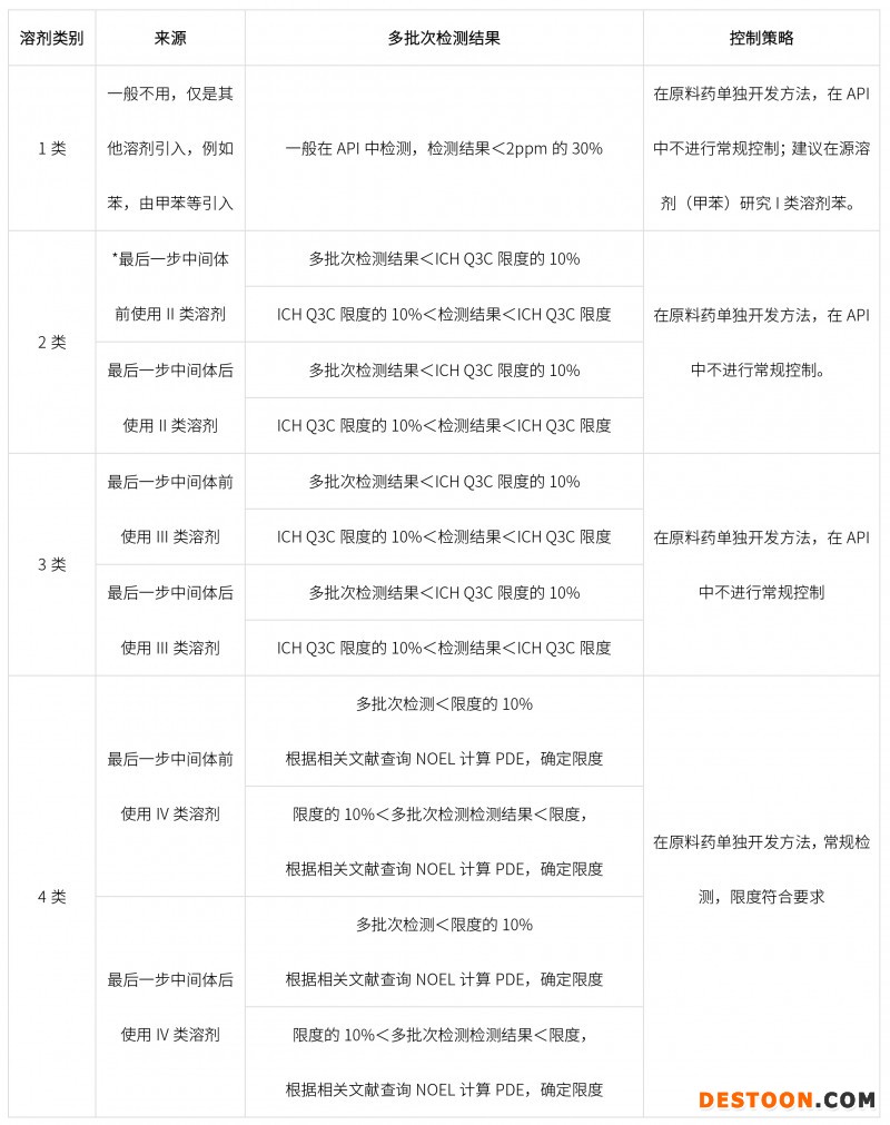 根據(jù)終產(chǎn)品合成工藝,結(jié)合ICH Q3C,確定控制策略如下:
