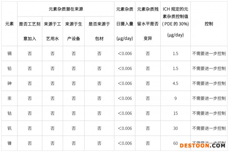經(jīng)過(guò)上述一系列風(fēng)險(xiǎn)評(píng)估和相關(guān)檢測(cè)數(shù)據(jù),確定原料藥中元素雜質(zhì)最終控制策略: