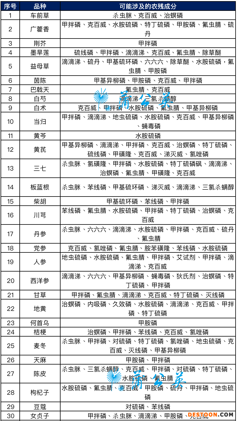 ▍常用50個中藥農(nóng)殘33項調(diào)研結(jié)果