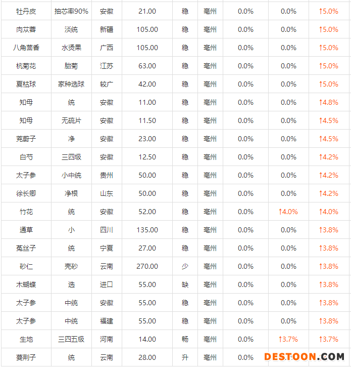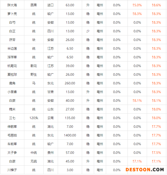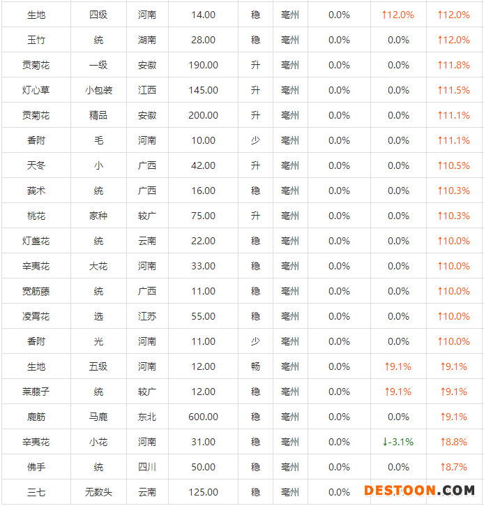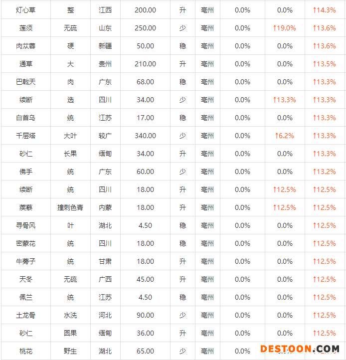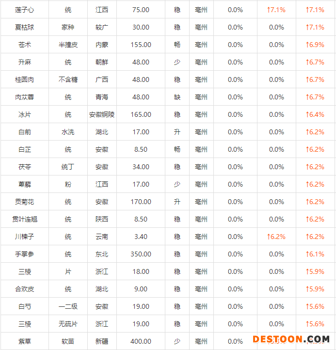 據(jù)中藥材天地網(wǎng)分析,至少在4月份,國(guó)內(nèi)中藥材價(jià)格仍將面臨極大上漲壓力。如果再出現(xiàn)極端“倒春寒”等天氣因素,則相關(guān)果實(shí)子仁類品種不排除會(huì)出現(xiàn)暴漲。