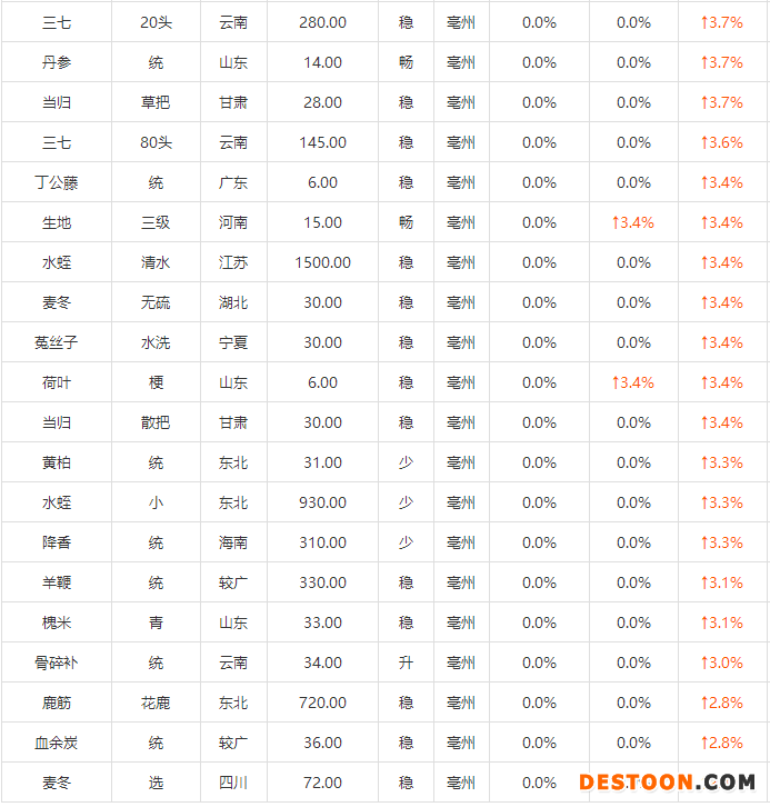 昨日,藥通社發(fā)布了亳州市場(chǎng)截止4月18日中藥材漲價(jià)品種排行榜,其中月漲價(jià)幅度超過(guò)100%的有蛤蚧、相思豆、鶴虱等。