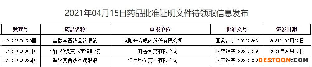 核心提示:4月20日訊 4月15日,NMPA官網(wǎng)更新了藥品獲批信息,興齊眼藥、齊魯制藥以及江西科倫藥業(yè)均有滴眼液新品獲批;4月16日,恒瑞子公