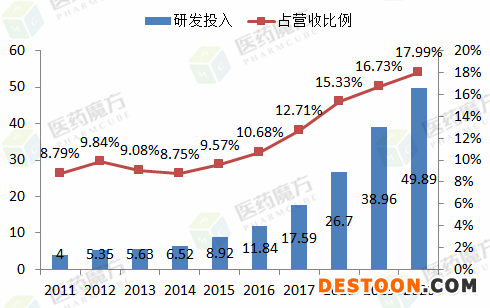 恒瑞醫(yī)藥近10年研發(fā)投入增長趨勢