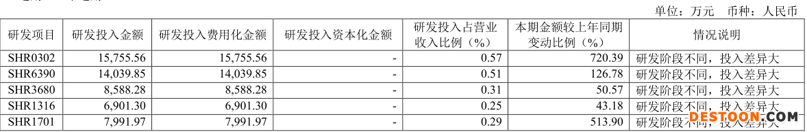 恒瑞主要研發(fā)項目投入(單位:萬元)