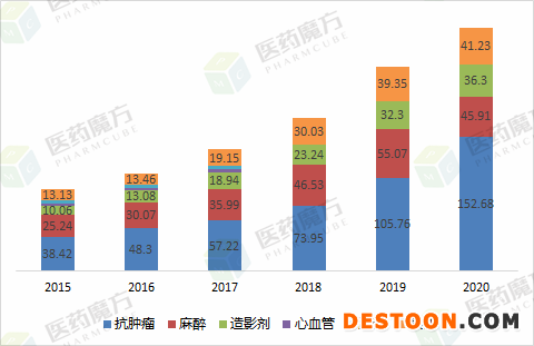 在恒瑞2020年的億元營業(yè)收入中,腫瘤藥品貢獻了152.68億元的份額。恒瑞的收入增長主要驅(qū)動因素為以下方面:腫瘤藥品銷售額較去年增長44.37%,造影劑產(chǎn)品銷售額較去年增長12.4%,麻醉產(chǎn)品同比下降16.63%。心血管和消炎收入未單列。