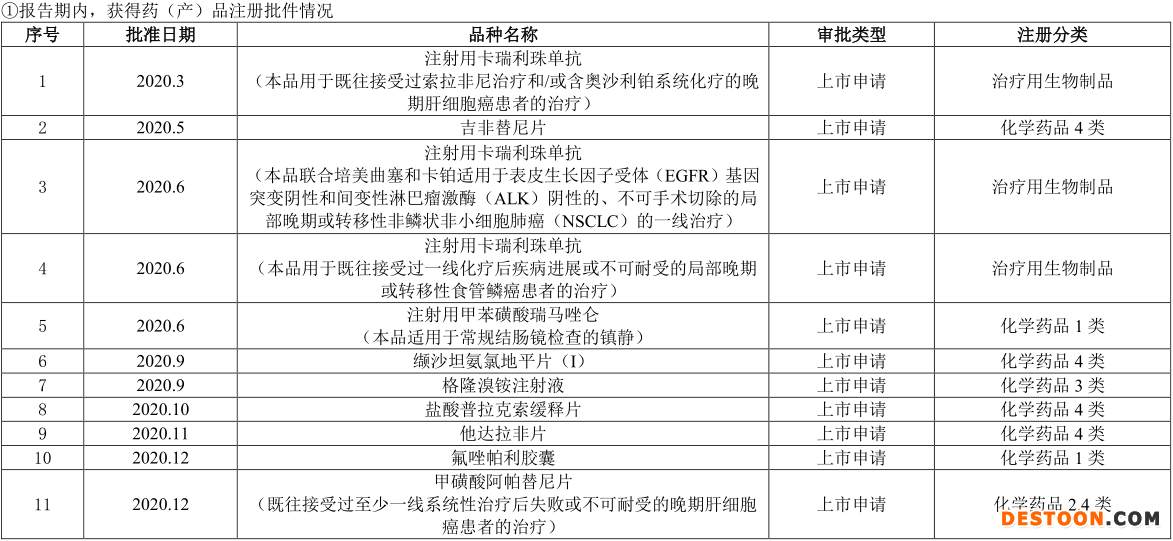 恒瑞報告期內(nèi)呈交監(jiān)管部門審批、通過審批的產(chǎn)品情況