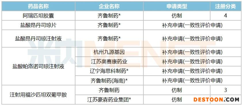 米內(nèi)網(wǎng)數(shù)據(jù)顯示,早前已過評/視同過評的止吐藥和止惡心藥涉及5個產(chǎn)品,齊魯分別拿下了阿瑞匹坦膠囊、鹽酸昂丹司瓊片、鹽酸昂丹司瓊注射液、鹽酸帕洛諾司瓊注射液的首家過評,本次獲批的鹽酸格拉司瓊注射液為齊魯在止吐藥和止惡心藥領域的第6個過評產(chǎn)品(第5個首家過評)。
