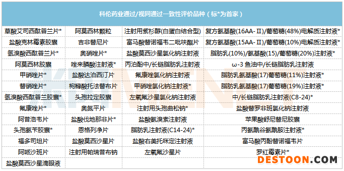 49個(gè)品種中21個(gè)為首家過評,氫溴酸西酞普蘭膠囊、奧硝唑片、鹽酸伐地那非片、氨基酸(16)/葡萄糖(48%)電解質(zhì)注射液、脂肪乳氨基酸(17)葡萄糖(19%)注射液、復(fù)方氨基酸(15AA-Ⅱ)/葡萄糖(10%)電解質(zhì)注射液、脂肪乳(10%)/氨基酸(15)/葡萄糖(20%)注射液、脂肪乳注射液(C14-24)、丙氨酰谷氨酰胺注射液、羅紅霉素片等10個(gè)品種暫為科倫藥業(yè)獨(dú)家過評。