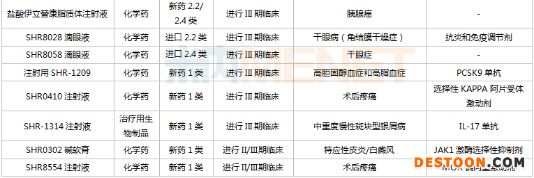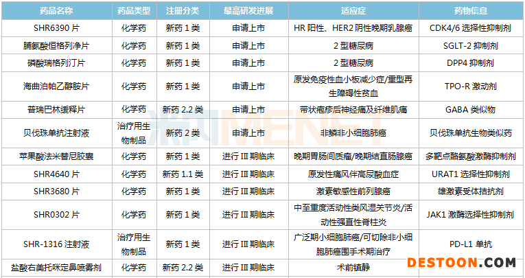 恒瑞醫(yī)藥步入III期臨床及以上的在研新藥