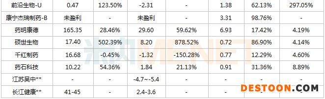 部分江蘇上市藥企業(yè)績情況(單位:億元)