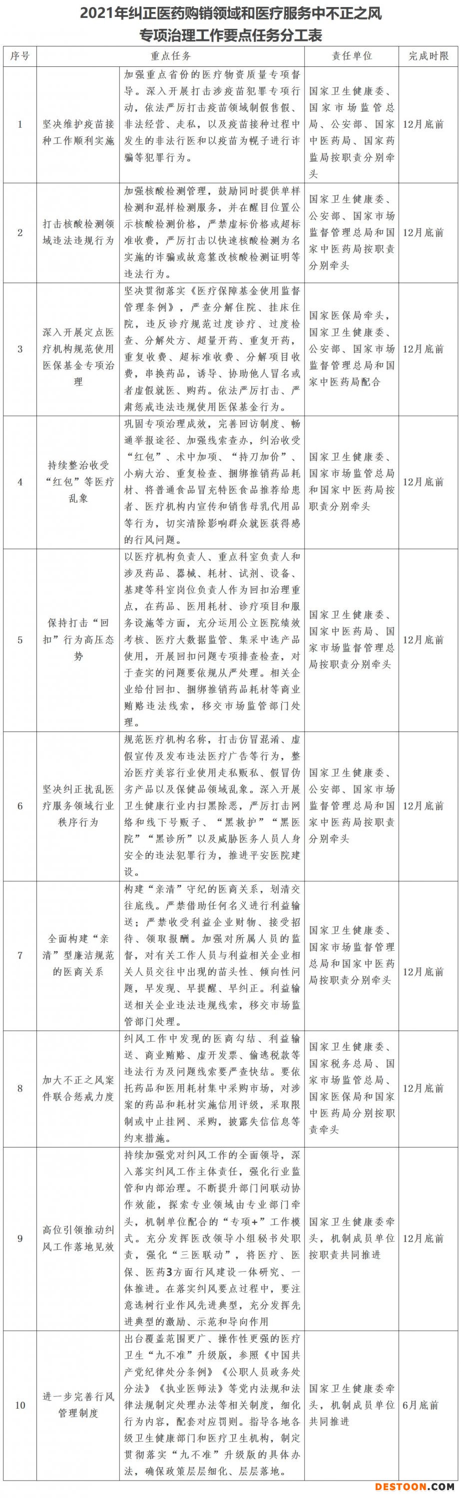 4月28日訊 4月27日,國家衛(wèi)健委等九部委印發(fā)2021年糾正醫(yī)藥購銷領(lǐng)域和醫(yī)療服務(wù)中不正之風(fēng)工作要點,包括堅決維護(hù)疫苗接種工作順利實施、持續(xù)整治收受“紅包”等醫(yī)療亂象、保持打擊“回扣”行為高壓態(tài)勢等。