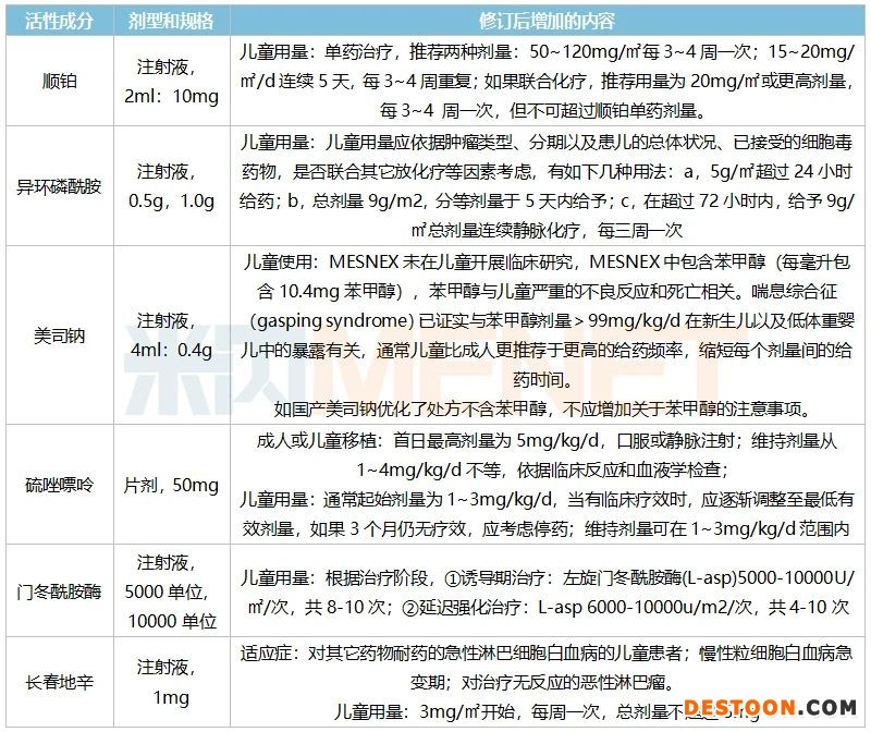 4月30日訊 4月26日,CDE官網(wǎng)發(fā)布通知,經(jīng)梳理品種清單審評篩選出6個抗腫瘤品種可直接修訂藥品說明書增加兒童適應(yīng)癥及用法用量等內(nèi)容,現(xiàn)向行業(yè)和社會征求意見。6個抗腫瘤品種分別為:順鉑、異環(huán)磷酰胺、美司鈉、硫唑嘌呤、門冬酰胺酶以及長春地辛,涉及恒瑞、齊魯、雙鷺?biāo)帢I(yè)、白云山、揚(yáng)子江等國內(nèi)巨頭。