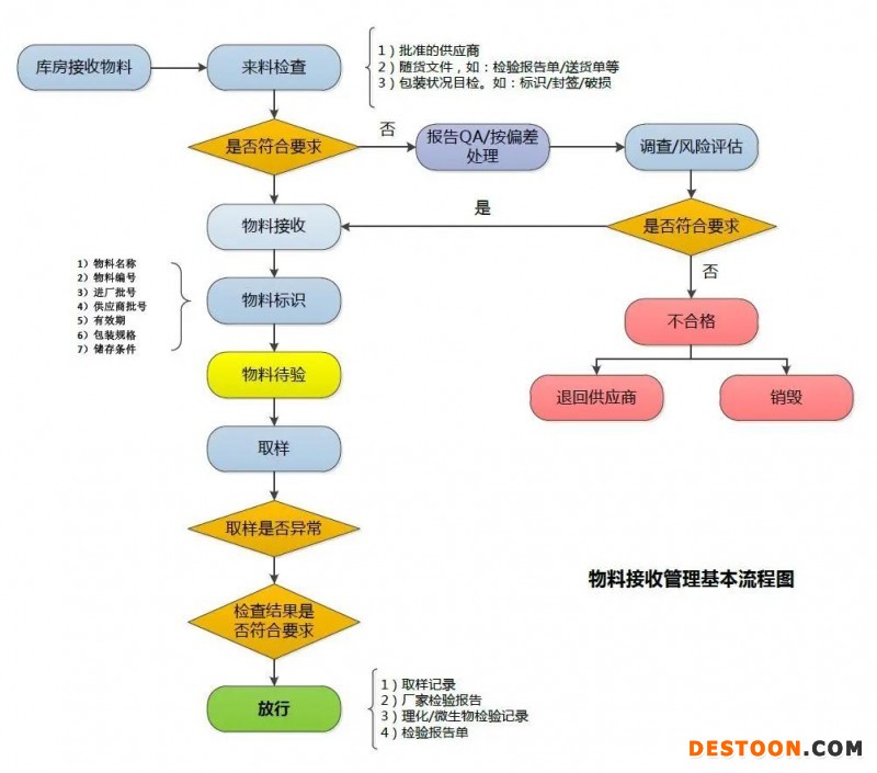 物料接收包括物料從入庫到存放、取樣、檢驗(yàn)、放行的全過程, 著重說明物料接收的步驟、檢查內(nèi)容和注意事項(xiàng)。