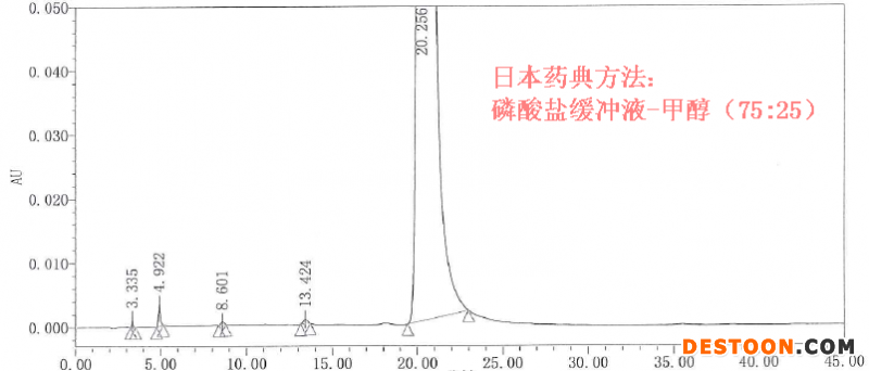 • 酸性化合物,可以選擇非緩沖的流動(dòng)相進(jìn)行pH調(diào)節(jié),用單一的酸溶液(一般常用磷酸)進(jìn)行色譜分離,酸的濃度應(yīng)足以使pH值比需要值低的多。