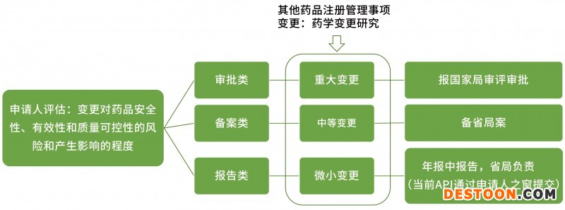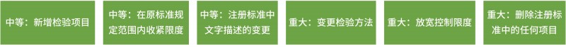 依據(jù)變更對(duì)藥品安全性、有效性、質(zhì)量可控性的影響,將藥學(xué)變更分為微小變更、中等變更和重大變更,由申請(qǐng)人依據(jù)對(duì)產(chǎn)品的理解進(jìn)行評(píng)估及相應(yīng)的研究、申報(bào)工作。