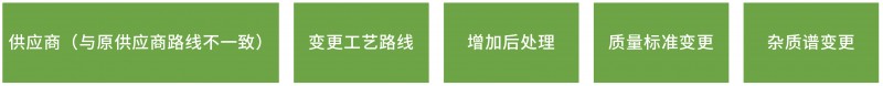 案例:某原料藥,由于起始原料供應(yīng)商不再供貨,對(duì)生產(chǎn)工藝的進(jìn)一步研究及制劑對(duì)原料藥質(zhì)量要求的提高,擬進(jìn)行一系列變更: