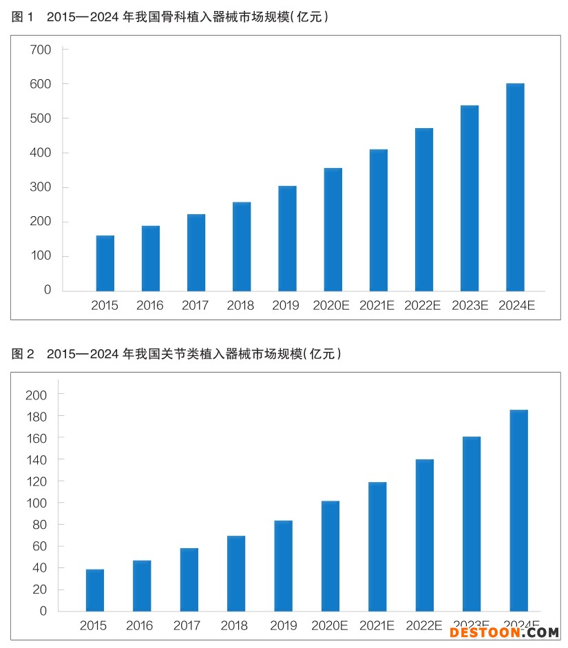 隨著全球經(jīng)濟(jì)發(fā)展以及人口老齡化問題不斷加劇,醫(yī)療健康市場的潛力被進(jìn)一步激發(fā)。醫(yī)療器械市場的發(fā)展與醫(yī)療健康行業(yè)緊密相關(guān)。從細(xì)分領(lǐng)域來看,骨科植入器械市場規(guī)模約占全球醫(yī)療器械市場總規(guī)模的9%,位列第四?;谖覈丝诨鶖?shù)龐大,社會老齡化進(jìn)程加速,骨科醫(yī)療需求不斷上漲,骨科植入器械行業(yè)近年來得到迅速發(fā)展,且仍有廣闊的市場前景和巨大的成長空間。