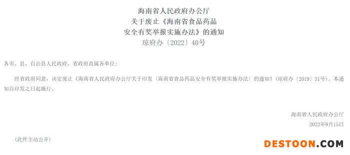 海南:廢止《海南省食品藥品安全有獎(jiǎng)舉報(bào)實(shí)施辦法》