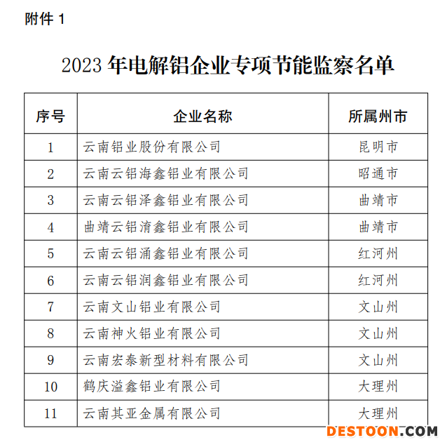 云南省11家電解鋁企業(yè),詳見(jiàn)附件1。